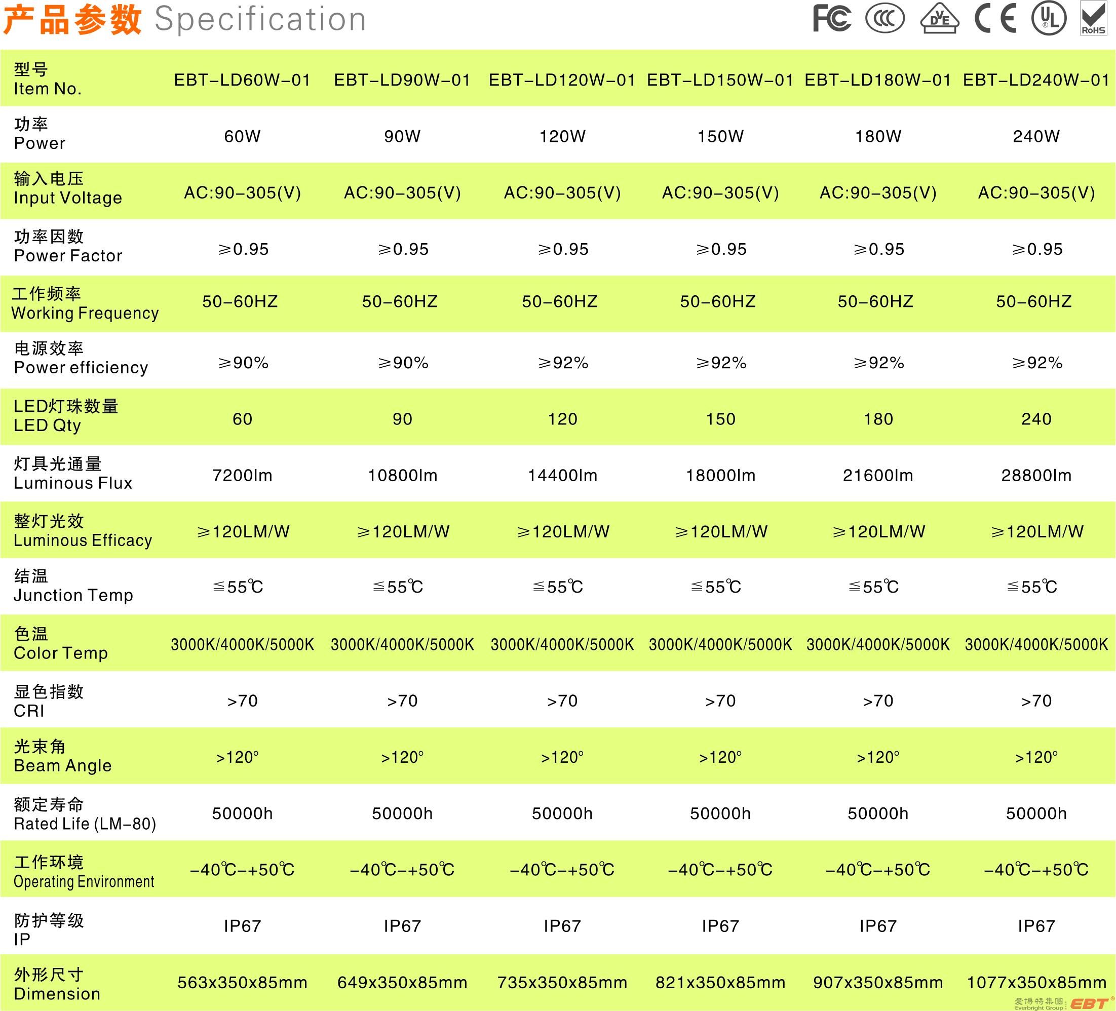產(chǎn)品描述:采用國(guó)際知名品牌芯片,高亮度,低光衰; 防水防塵防腐蝕; 采用通孔結(jié)構(gòu)散熱,使用壽命長(zhǎng); 科學(xué)配光,適用多種場(chǎng)所。